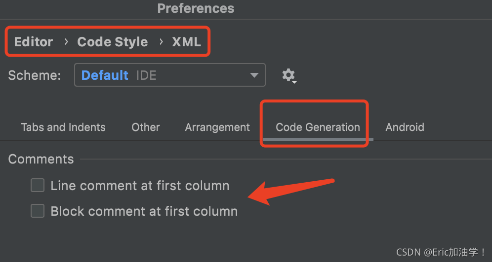 找到Code Generation这一栏,取消掉两个勾选
